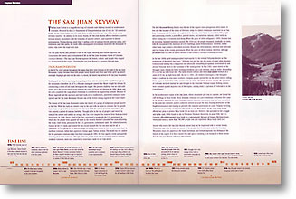 The San Juan Skyway, a 236-mile drive, is honored by the United States Department of Transportation as one of only six "All American Roads" in the United States. It is often described as one of the most scenic drives in America, and affords travelers a journey through historycomplete with remnants of ancient cultures such as the Ute cliff dwellings of Mesa Verde.